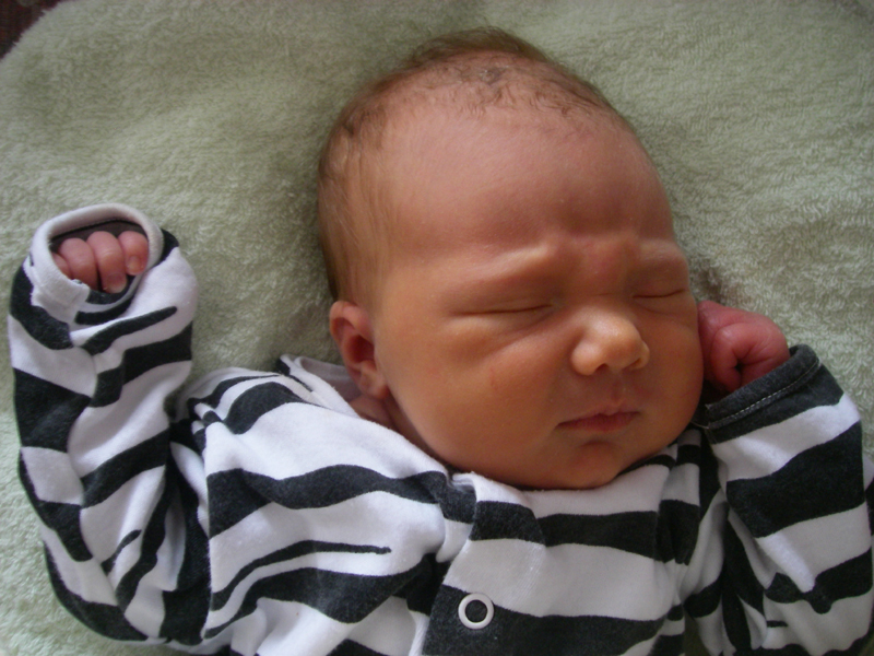 Yet another midwife today. This one was happy that Jessica’s yellow-ish skin tone didn’t look too bad and also told us that it can take up to several weeks for jaundice to clear properly. So I guess we shouldn’t panic if it doesn’t go in the next few days… We keep Jessica in our nicely-bright living room, in the carry cot with a big white sheet draped around it, and as the weather has been sunny the last few days, hopefully she’s absorbing a lot of much needed UV light.
