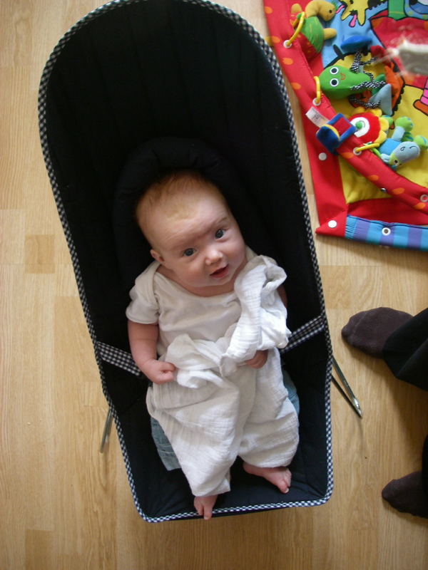 We’ve only done this for two nights so far, and would like to introduce a bedtime story somewhere too, although that should maybe be later when we have an exact time for her last feed and can time it according to that. Plus maybe we should wait until she’s old enough to appreciate the fact that we’re reading her a story, but I can’t see the harm in reading to her anyway… (As you can tell, we’re not doing any evening bathing – too time consuming and feels unnecessary, plus, as my aunt Anette pointed out, it can dry the baby’s skin out.) Ultimately, we want her to be able to go to sleep on her own, without needing to be fed, sung or rocked to sleep or needing one of us to sit by her bedside everytime until she falls asleep. If anyone reading this has any suggestions to how we can adjust the above to get this result, please let us know!