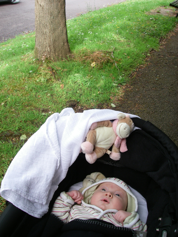 Partly I was hoping that the fresh air would aid Jessica’s sleep. Not that she’s not sleeping well, (last night she slept from 10pm to just after 5am again), but we’ve just started to try to develop a bedtime routine for the evening and my thoughts were that maybe her feeling nicely tired and going to sleep more quickly would help her take to our routine sooner… Worth a try – fresh air is always good, at any rate.