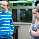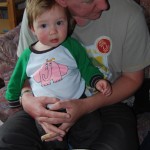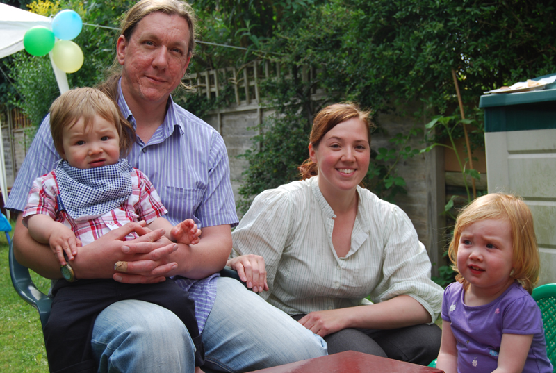 Bank holiday weekend and two kids’ birthday parties to go to! First one was yesterday, Conrad’s big sister Jessica’s friend Daisy turned two, and her parents were having a BBQ with cake. Weather was good for it: sunny, with a few clouds drifting past every so often, and a bit of a breeze. Conrad had had a morning nap, so he was cheerful, happy to walk about holding on to just one hand, or finger really, sometimes with Mummy, sometimes Daddy, and didn’t even mind just suddenly taking a couple of steps over to one of our friends, Jerry, grabbing hold of his hand and walking around with him for a while (until he spotted Mummy again…).