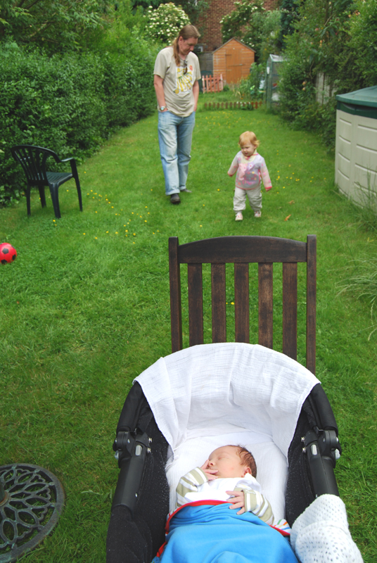In the afternoon Ian had his first go at bringing the two kids out in the double buggy on his own, going food shopping while I stayed at home to hoover for the first time since Conrad’s birth.