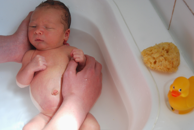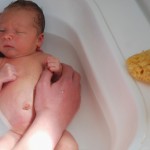 Today we just had a quiet day at home. When Jessica had her nap in the morning, Ian and I took the opportunity of giving Conrad his first ever bath. Ian made sure to run the bath water nice and warm. Conrad cried when Ian lowered him into the water, probably because of the unexpected sensation, but it didn’t take him long to calm down and just look perplexedly around him. I used a natural sponge to wash him all over with warm water (we have been recommended to not use anything else when washing him for the first 4-6 weeks) while Ian held him. We didn’t make the bath last very long, as it was the first time and we didn’t want to let him get cold.