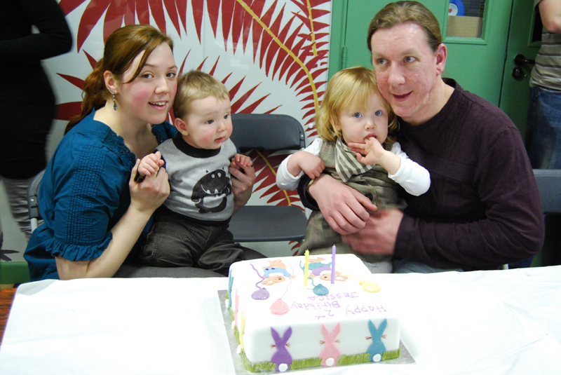 At the party we weren’t short of volunteers who wanted to spend some time with Conrad while Mummy and Daddy did their co-host party duties. One of the mums, Lisa, asked to hold him for a bit and he lent in towards her face, forehead to forehead, to look into her eyes – something he does a lot, he seems to like to be very close – and she knew straight away to just lean and look back (‘”My Tommy used to do this”, she said – so I guess they grow out of it…).