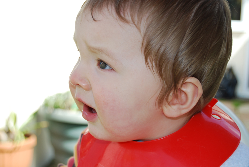 Today Conrad managed to pick up his water mug and drinking from it all by himself. He’s been playing with it a lot mealtimes, and as it’s not a non-spill one or anything fancy like that, it’s created a lot of puddles on the table of his highchair and the floor, as well as filled the trough of his pelican bib up quite nicely… I try not to interfere too much to let him work things out for himself, but do turn the mug over as soon as I can when it’s upside down – why the underside of the mug should be so much more interesting beats me…!