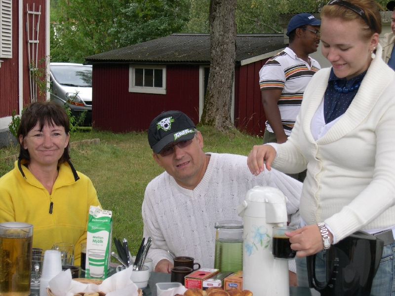 Marina, Jens och Ulrika vid kaffetermosen. Marina, Jens and Ulrika having coffee. [foto:Gabriella]