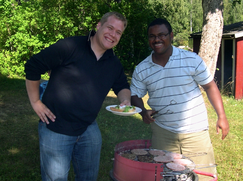 Niklas och Nuredin vid grillen. Niklas and Nuredin at the barbecue. [foto:Gabriella]