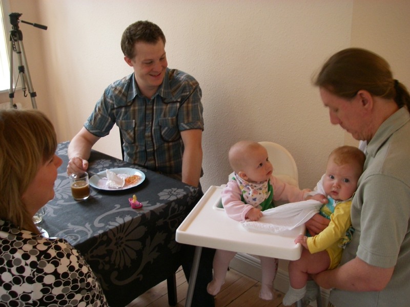 Mia, Niklas and Ian look on as Kajsa-Lotta and Jessica meet